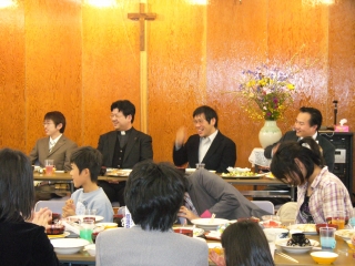 主日礼拝後、受洗された兄弟、他教会より転入された兄弟を囲みつつ、愛餐会がもたれました。