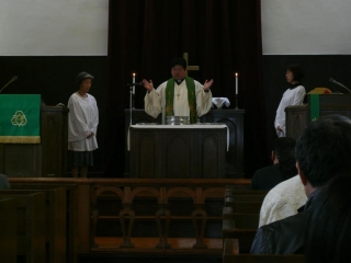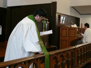 そして、聖餐礼典執行。この日から、聖壇上の奉仕者(サーバー)は、サープリスを着用しています。